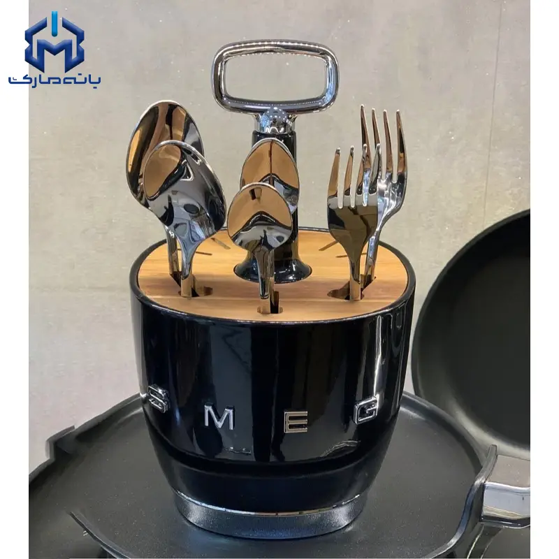 استند اسمگ مشکی مدل Cutlery Caddy یکی از اکسسوری های لوکس و کاربردی برند معتبر SMEG است که با طراحی منحصر به فرد و کیفیت ساخت بالا، به شکل حرفه ای به نظم دهی ابزار آشپزخانه کمک می کند. این محصول برای افرادی طراحی شده که علاوه بر کاربرد، به هماهنگی بصری آشپزخانه و جزئیات دکوراسیون اهمیت می دهند. استند قاشق و چنگال آشپزخانه مشکی اسمگ با رنگ عمیق و مدرن خود، جلوه ای شیک، مرتب و حرفه ای به فضای آشپزی می بخشد و به راحتی با سایر لوازم اسمگ ست می شود.